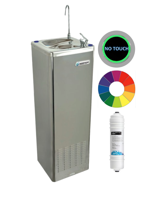 Drinking water cooler, free standing, stainless steel or galvanized steel/painted bodywork